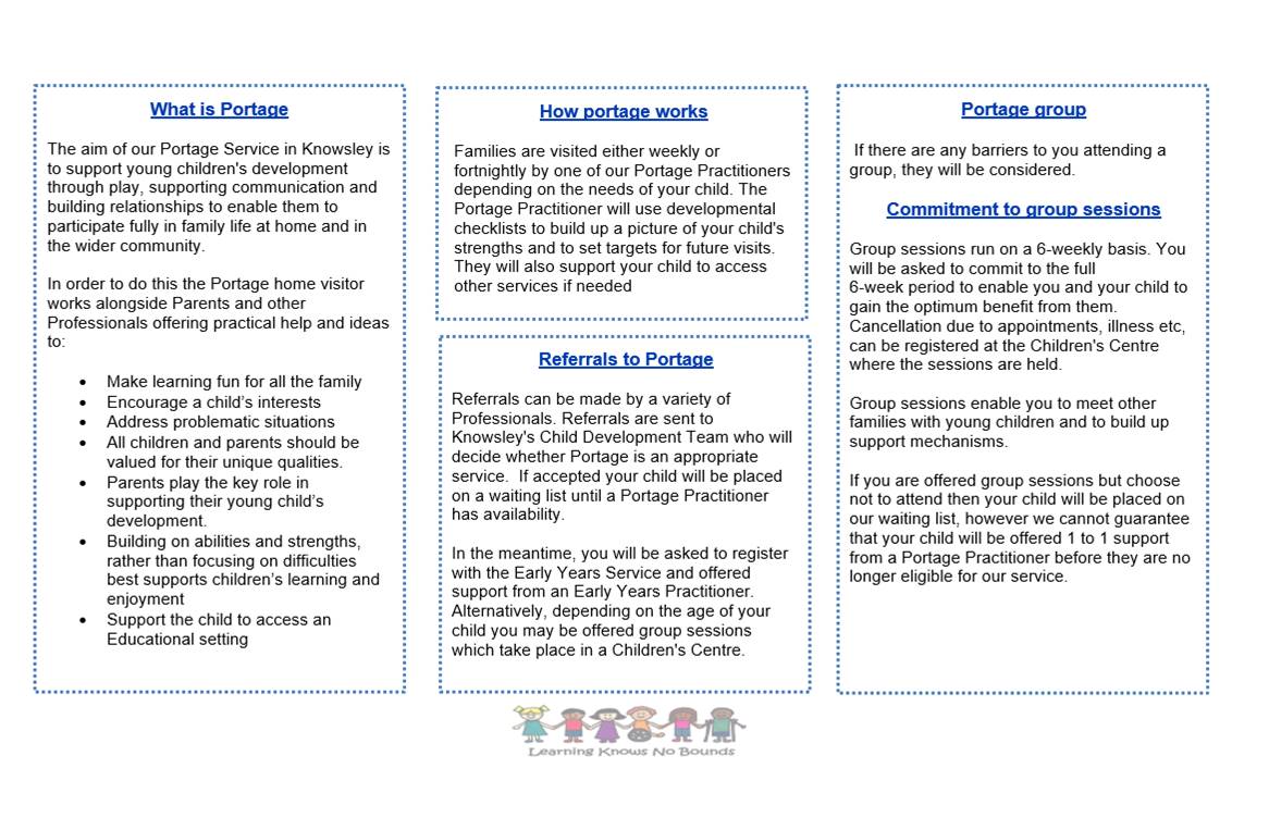 Service requests for can be made by a variety of Professionals involved with your child such as Health Visitor, GP, Community Nursing Team. Referrals are sent to Knowsley's Child Development Team who will decide whether is an appropriate service. Parents cannot directly refer for .